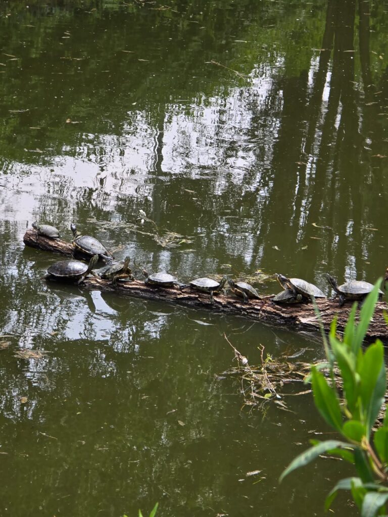 Aún las tortugas, en su caparazón, que podría separarlas de todo a su alrededor, comparten un viaje juntas.